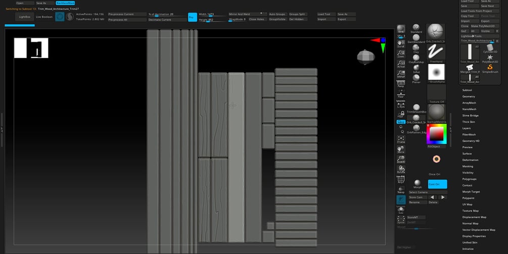 - Esculpido del Trim en Zbrush ( se puede realizar en Blender )